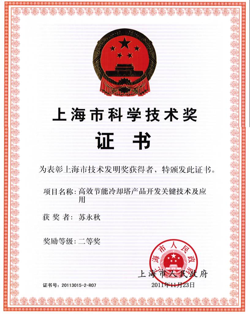 日前,作為鑫凌制冷公司核心成員之一的蘇永秋先生獲得上海市科學技術二等獎,項目名稱“高效節能冷卻塔產品開發關鍵技術及應用”,這也是蘇永秋先生第三次獲得省級科學技術二等獎。